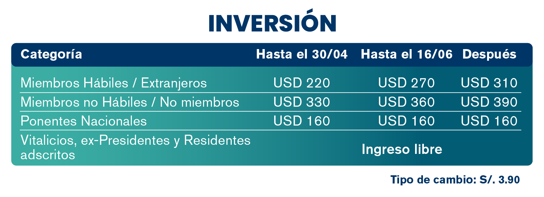 Miembros no hábiles o No miembros ($ 330.00) – dólares americanos